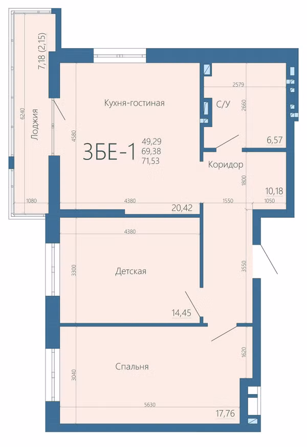 Площадь от 43 м2